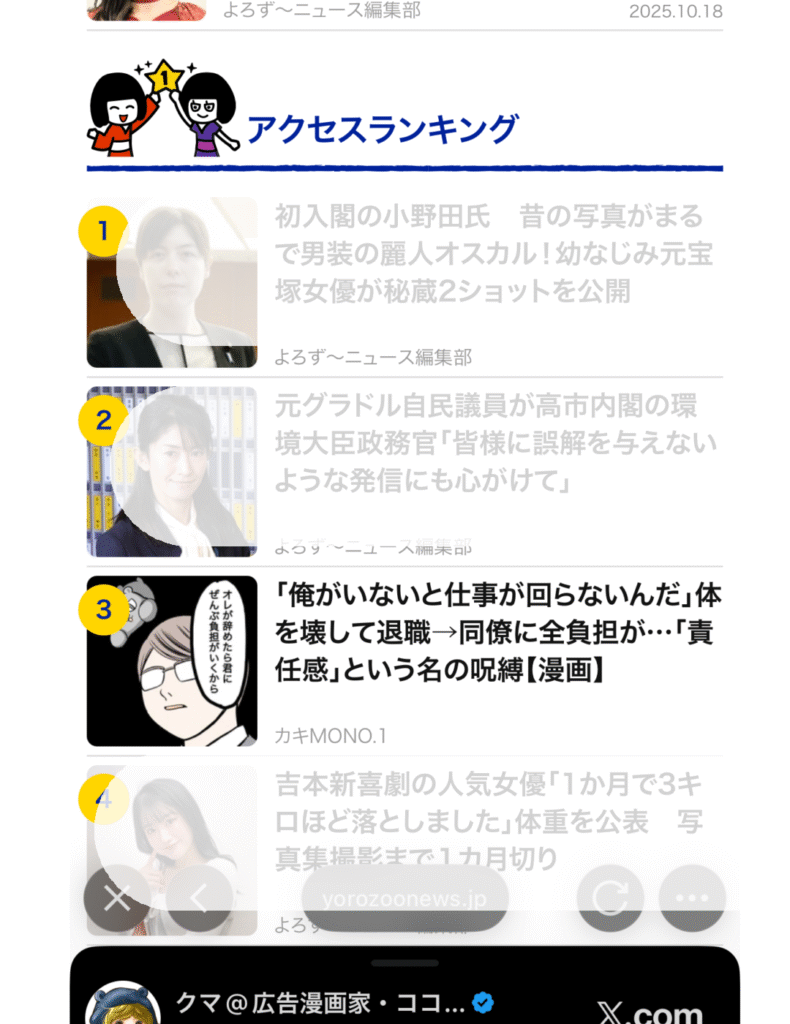 翌2025年10月24日、よろず~ニュース様のサイトでアクセスランキング3位!